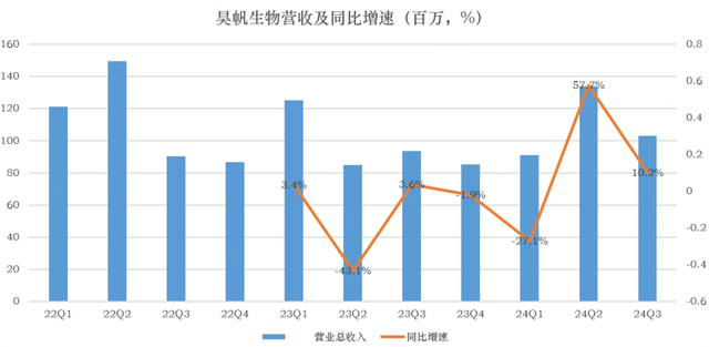 从收入上看,今年二季度,昊帆生物营收增长58%,三季度增长10%,相比之前负增长的情况,基本面已经反转: