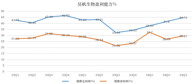 从盈利能力上看,昊帆生物的毛利率高达45%,净利率高达30%,比药明康德还赚钱: